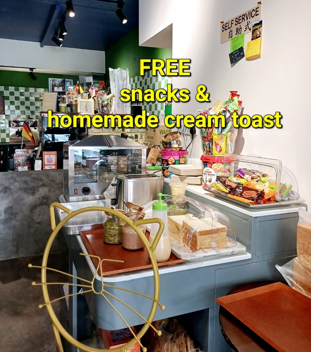 Terjumpa this cafe during my walk at Kuching & the service was good (owner was super friendly!). I saw few details at the stair which was aesthetic The matcha latte was fine & gula apong matcha got really strong taste, some people might not like it The food was okay & customer got free tit bits which is great! The toast also free one per person who order drinks there. I got matcha toast > so sedap!